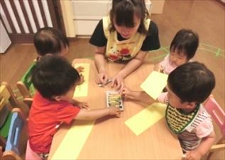 そして、保護者に寄り添り長い開園時間になっています。夕飯の時間、全学年合同保育となり異年齢の子どもの関わりを見ることが出来ます。小さい子をお世話していたり、年上のお友だちの遊びを真似する姿があり保育園ならではの関わりがあります。