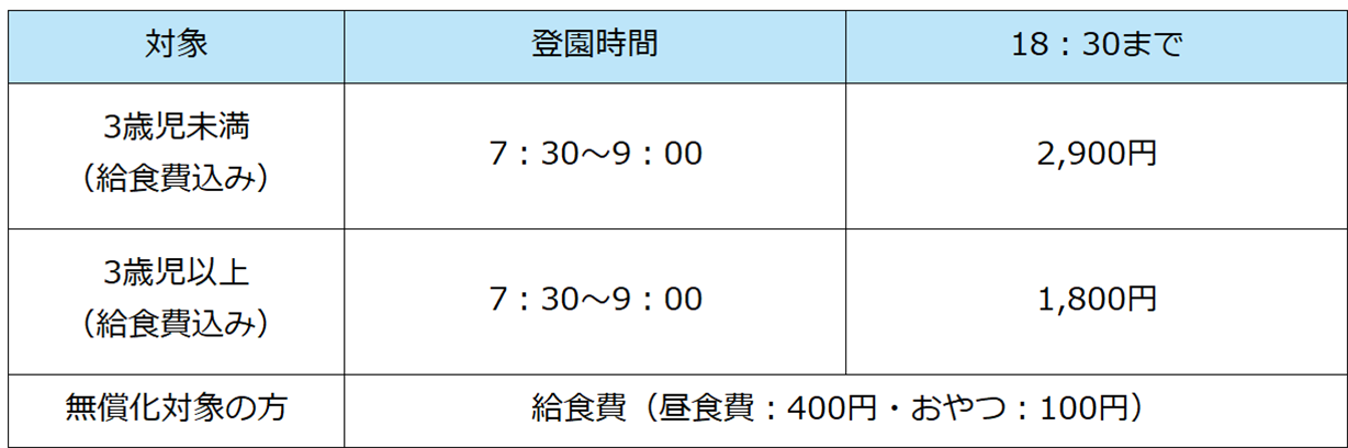 このほかに、給食・おやつを提供した場合、1日あたり500円かかります。